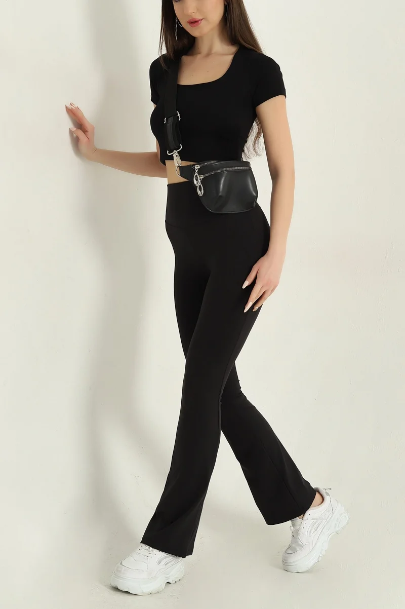 Siyah Şık Vücuda Oturan Tasarım İspanyol Oysh Tayt
