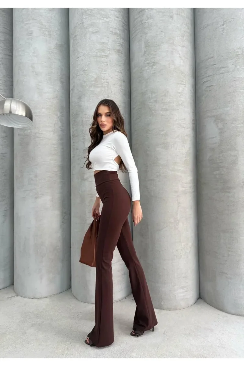 Kahve Şık Vücuda Oturan Tasarım İspanyol Oysh Tayt