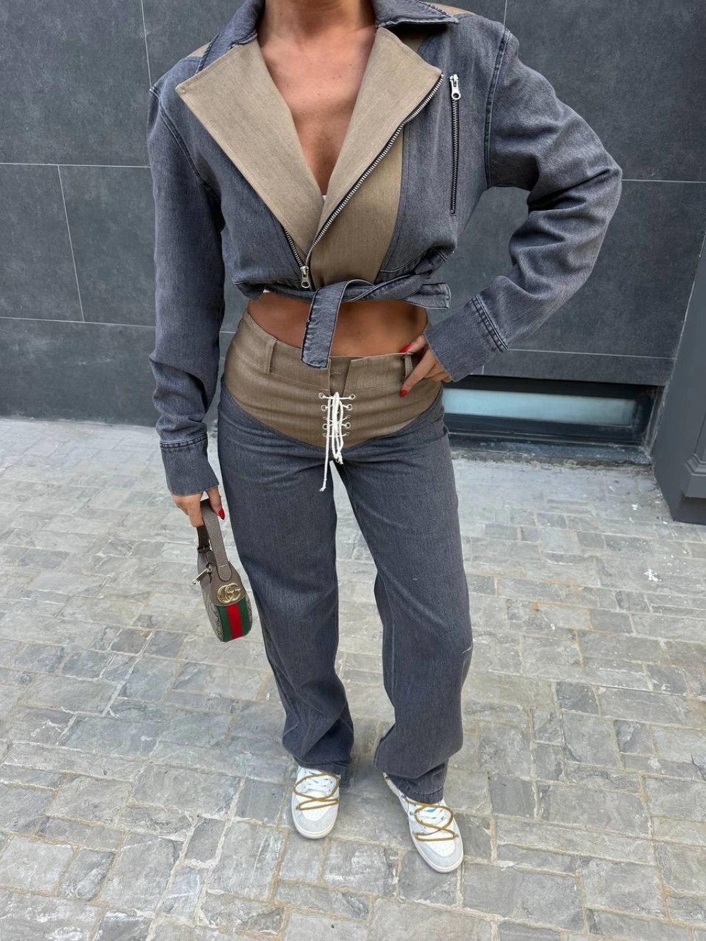 Antrasit Özel Tasarım Class Denim İkili Takım