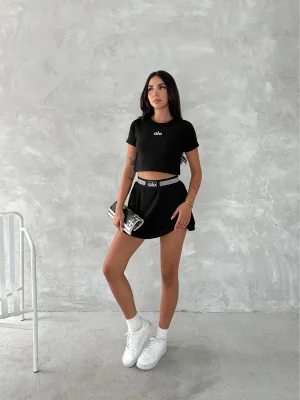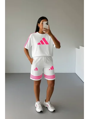 Bej Alo Çizgili Ribana Şort Etekli Takım