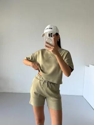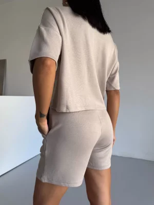 Modaskop Bej Alo Çizgili Ribana Şort Etekli Takım, şıklığı ve rahatlığı bir arada sunar. KOMBİN > Şortlu Takımlar kategorisinde!