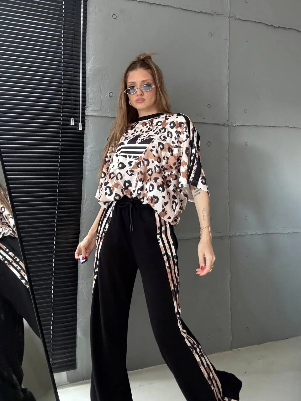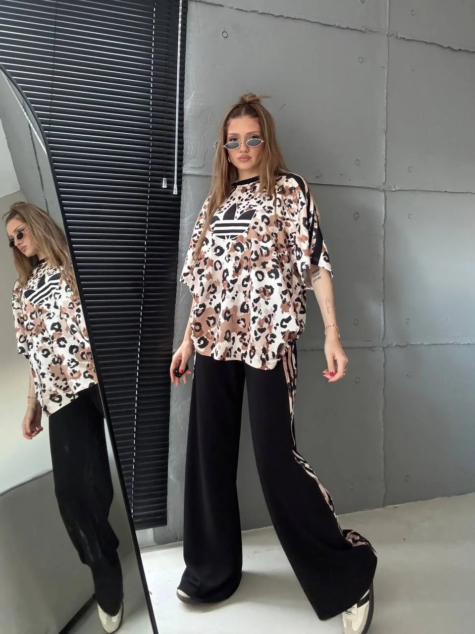 Bej Oysho Kumaş Özel Seri Leopar Desen Oversize Takım