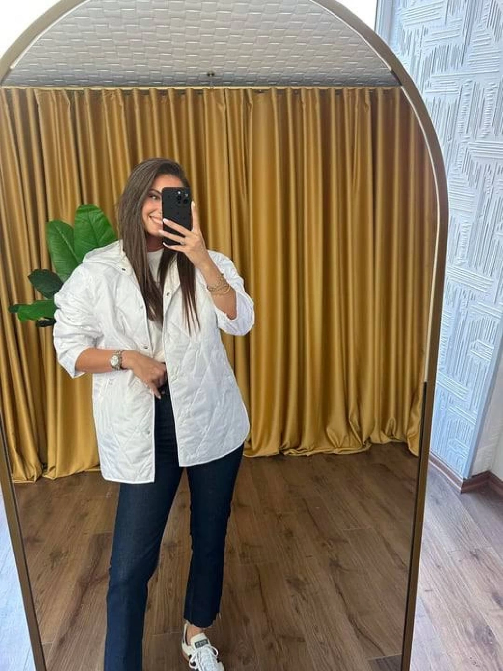 Beyaz Leopar Ceket Yaka İçi Satarlı Uzun Kürk Kaban
