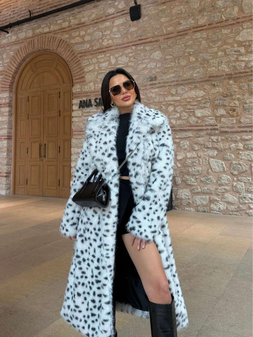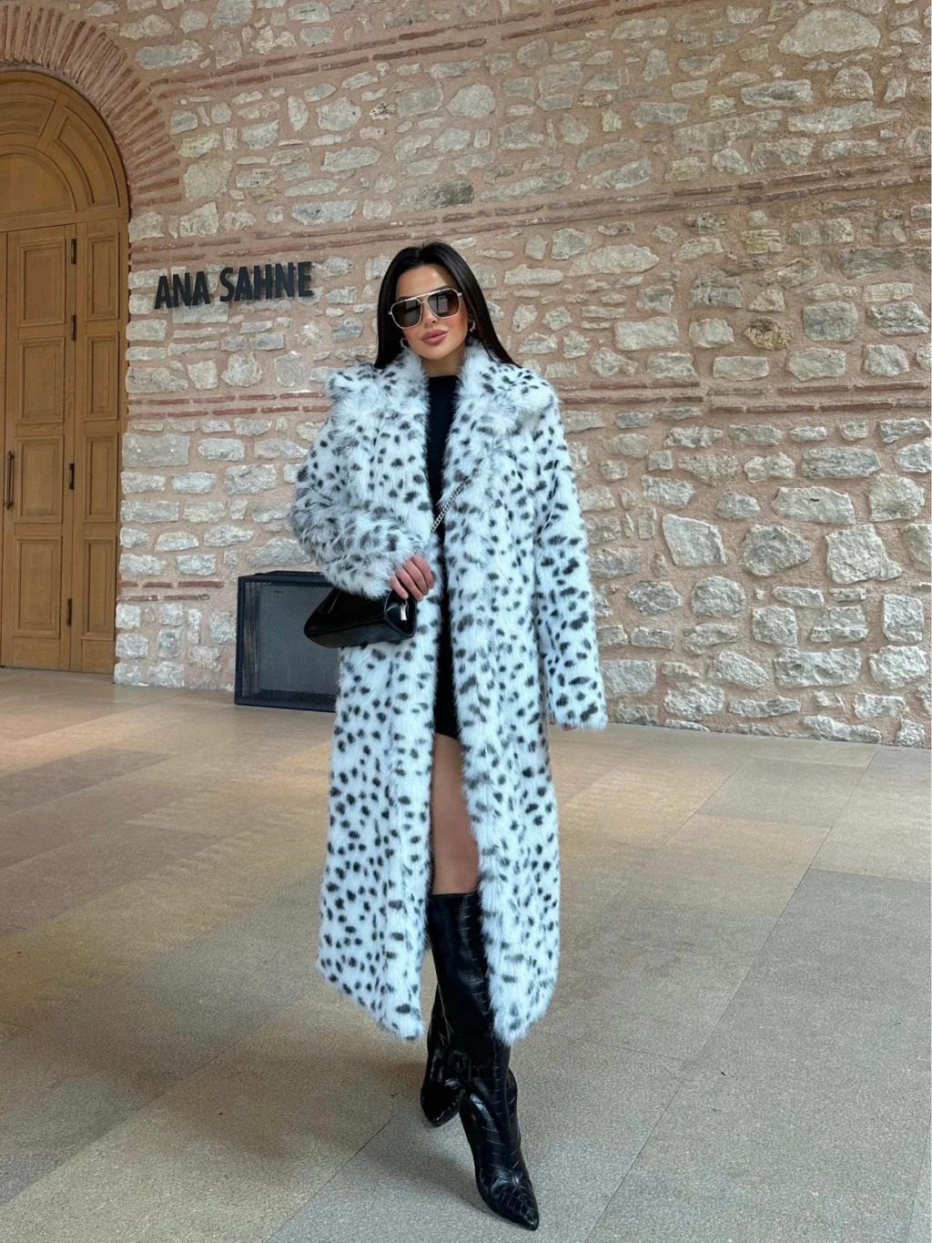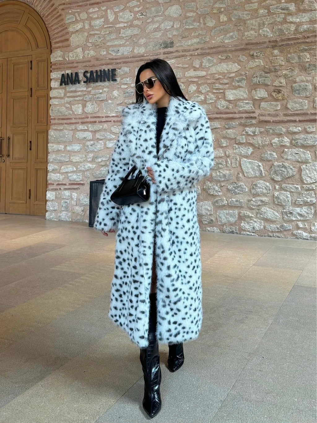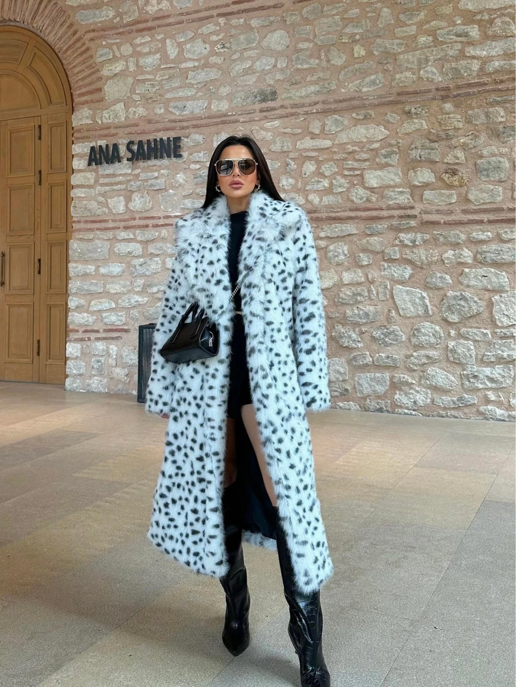 Leopar Ceket Yaka İçi Satarlı Uzun Kürk Kaban