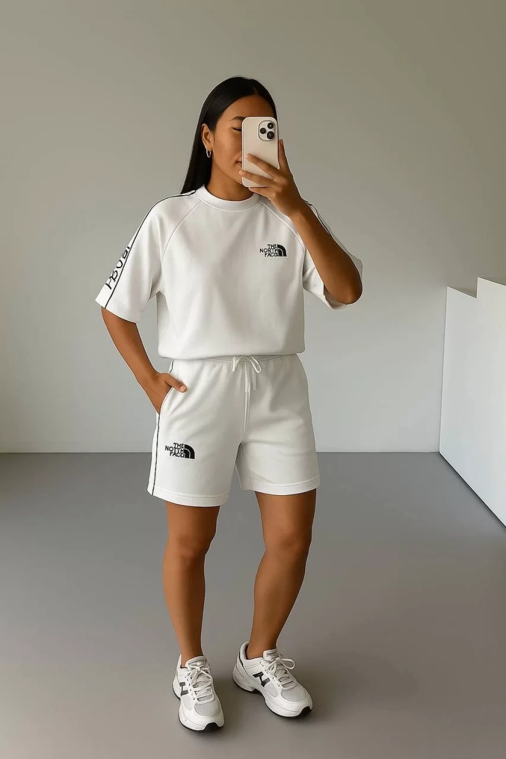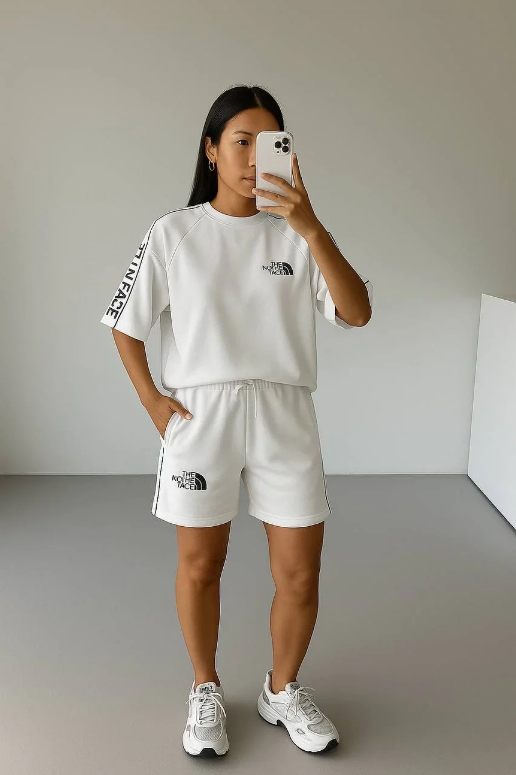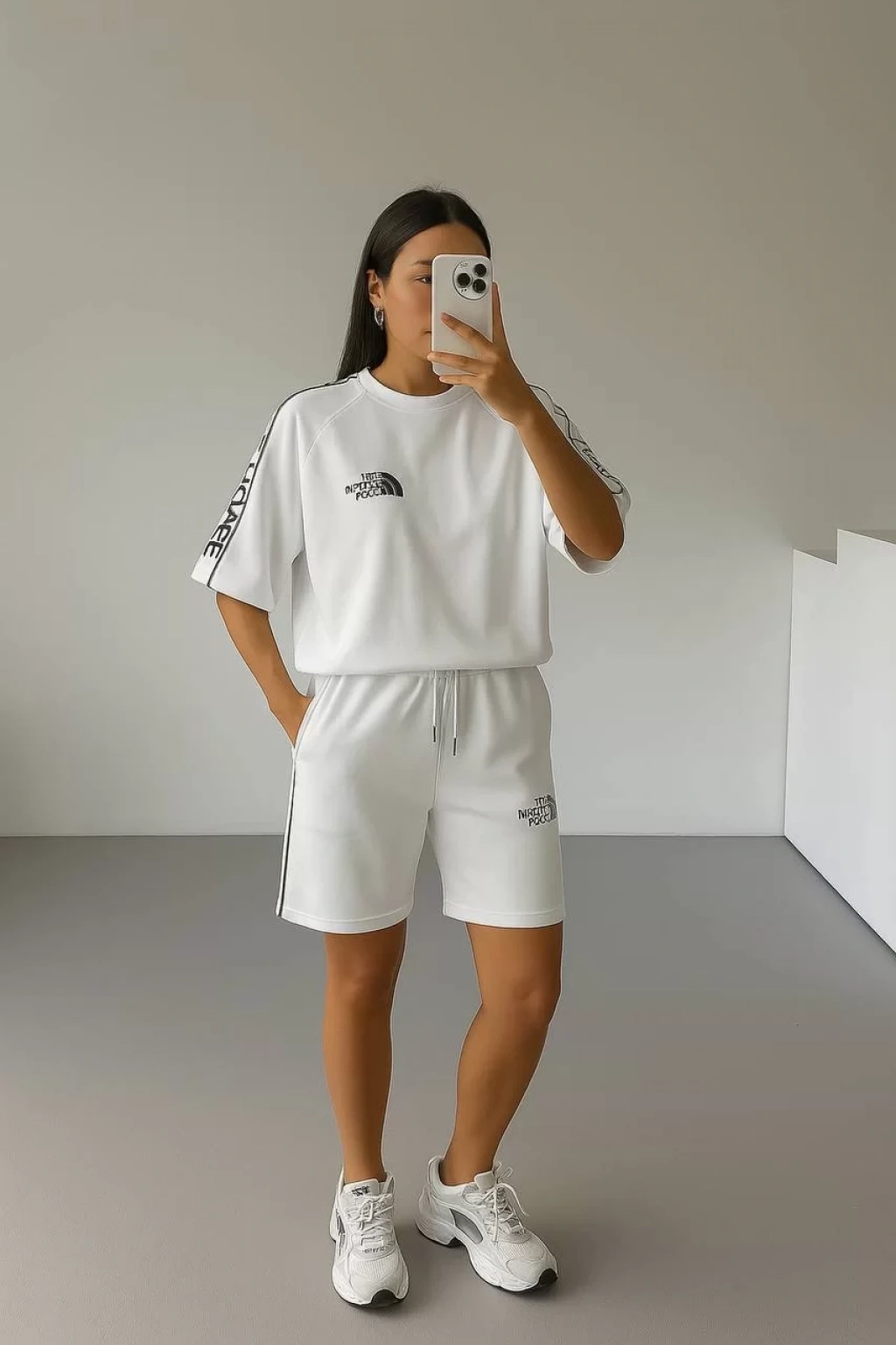 Beyaz NF Oversize Unisex Şortlu Takım