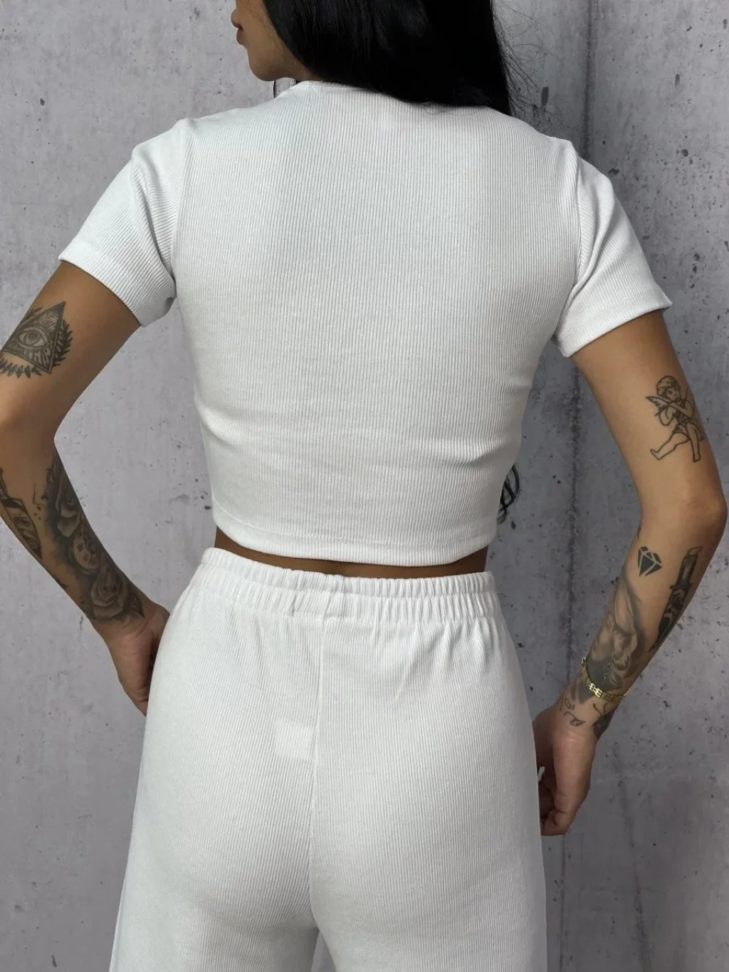 • Beyaz Palazzo Crop İkili Takım<br /><br />SIZE:: S-M-L<br />Manken &Ouml;l&ccedil;&uuml;s&uuml; : Boy:170 cm -- Kilo :55 kg.<br />Mankendeki Beden: S (36)