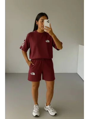 Bordo Brasil Oversize Unisex Şortlu Takım