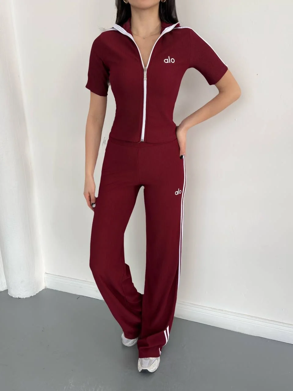 Bordo Fermuarlı Dik Yaka Yan Şeritli Spor Takım