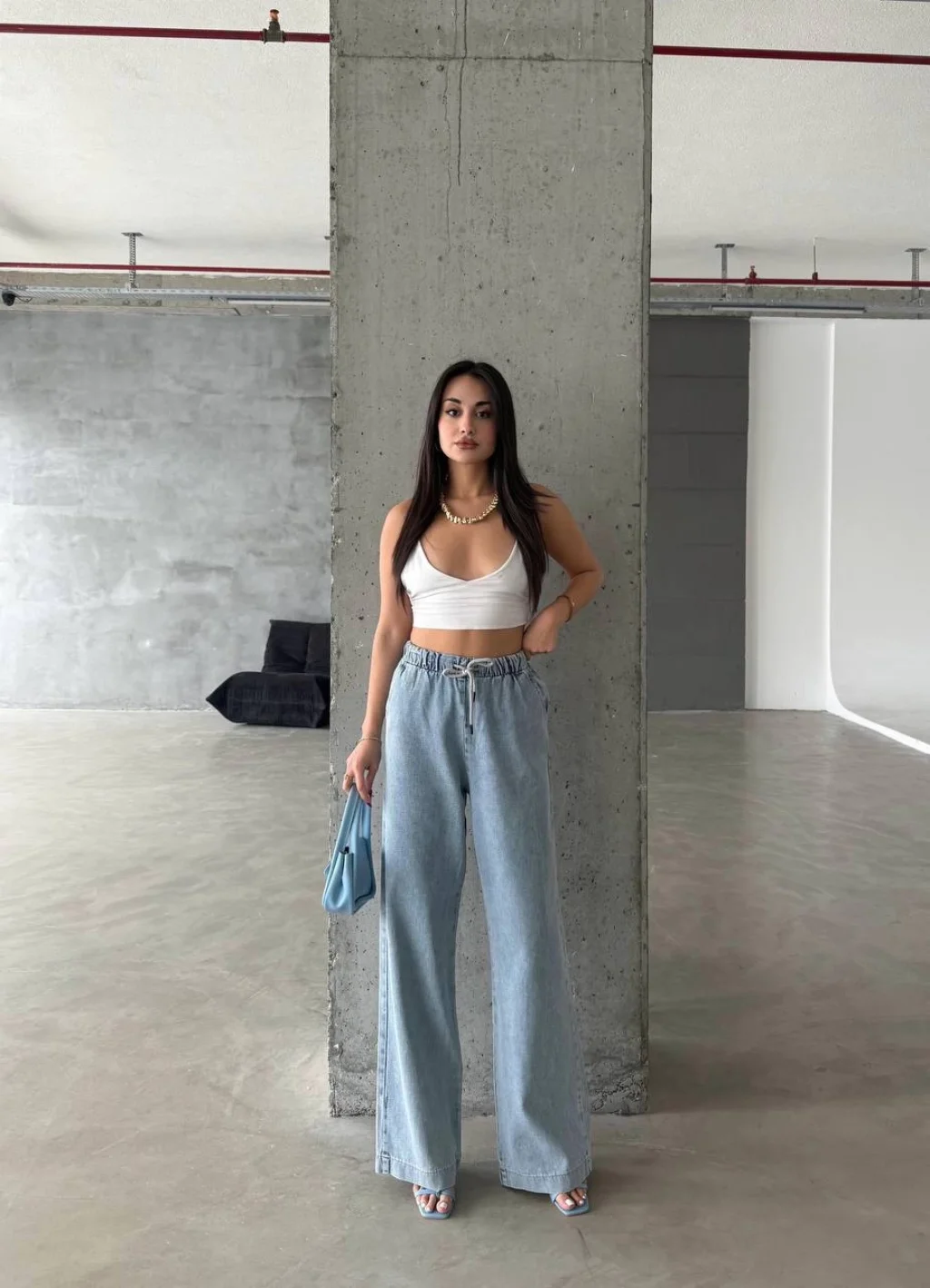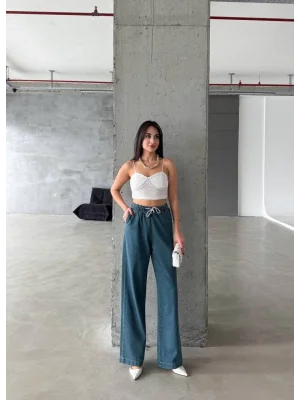 Buz Rengi Palazo Bel Bağlamalı Jean