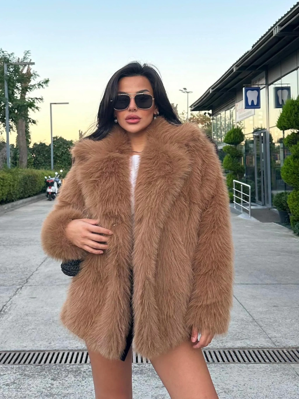 Beyaz Ceket Yaka Kürk Kaban