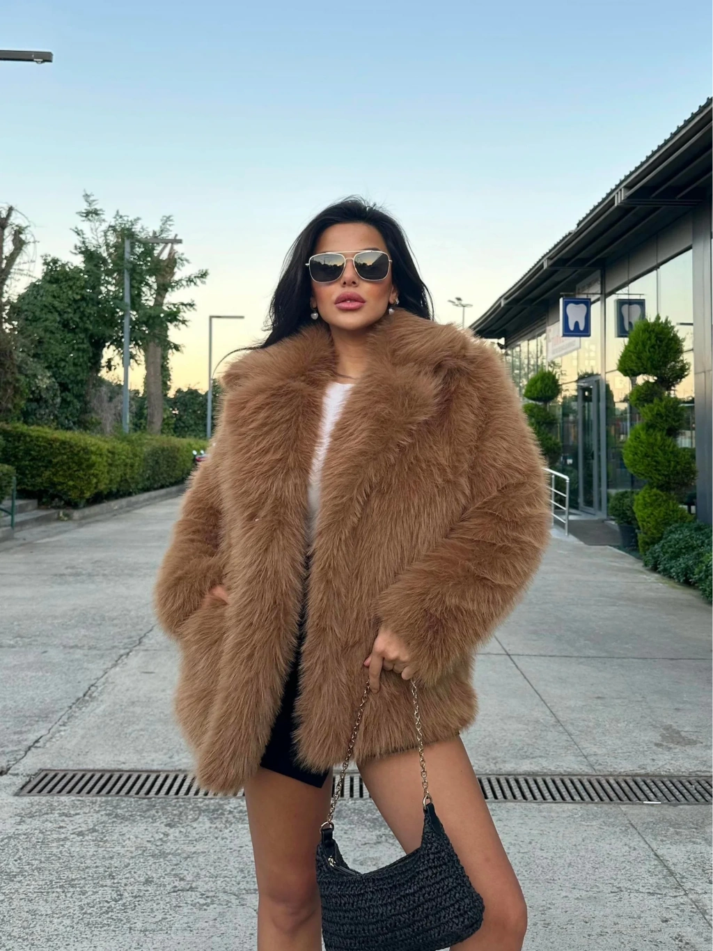 Siyah Ceket Yaka Kürk Kaban