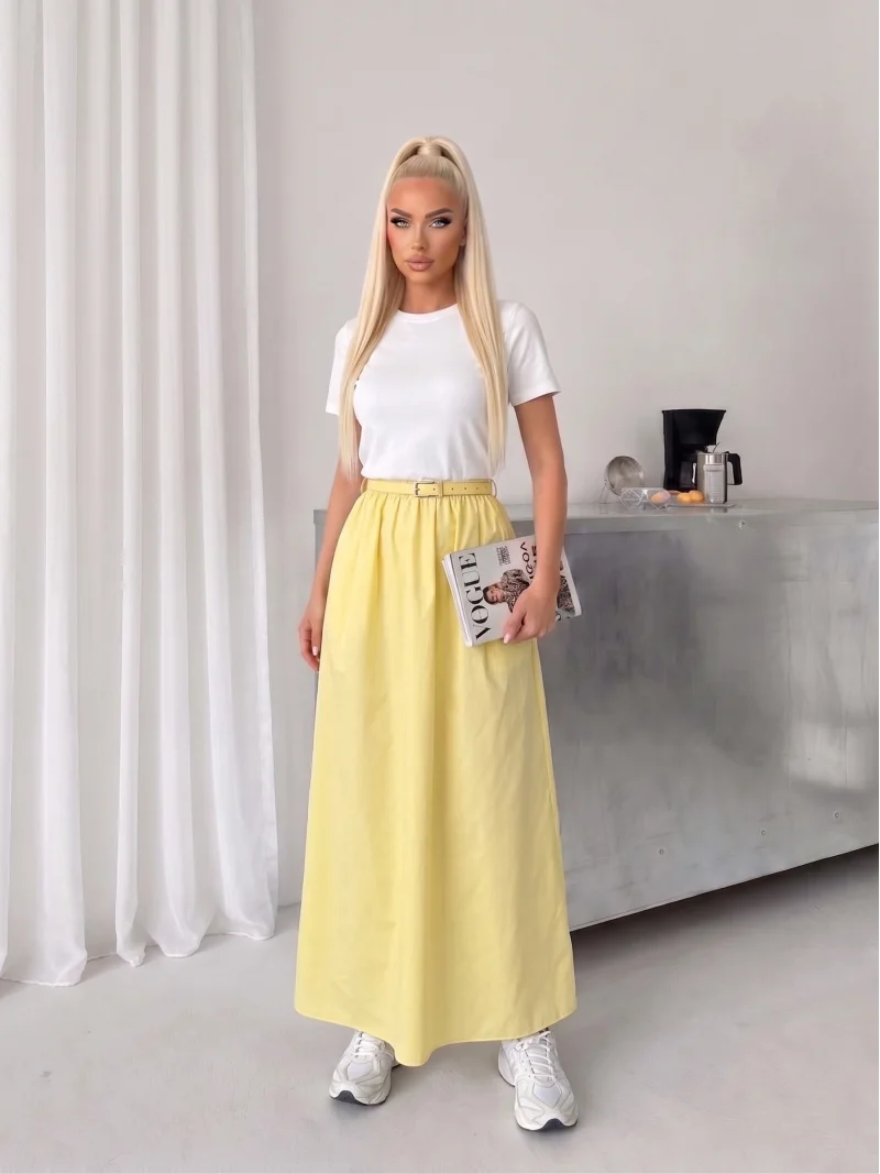 Sarı Poplin Kemer Detay Etekli Elbise