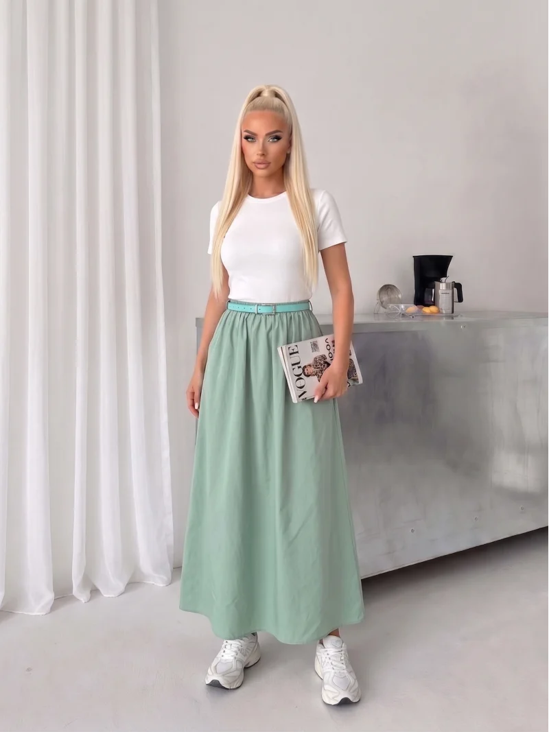 Mint Poplin Kemer Detay Etekli Elbise