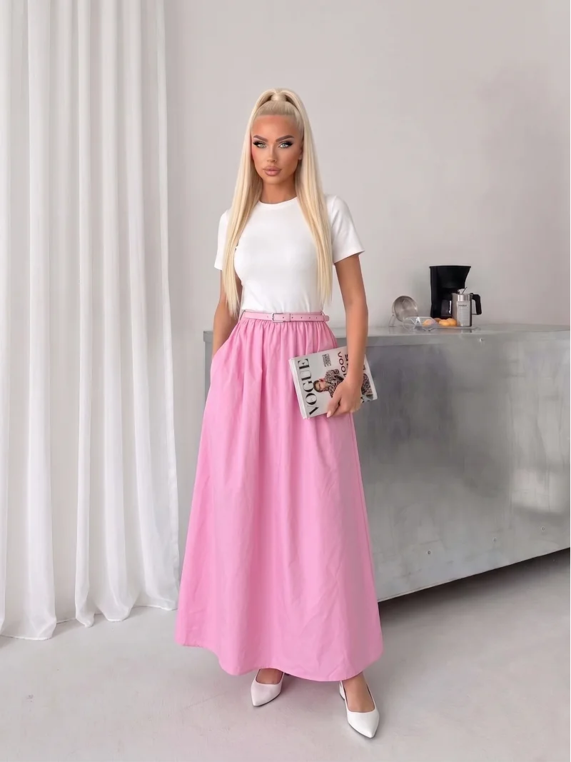 Pembe Poplin Kemer Detay Etekli Elbise