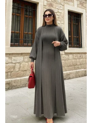 Bej Alo Polo Yaka Likralı Kaşkorse Elbise