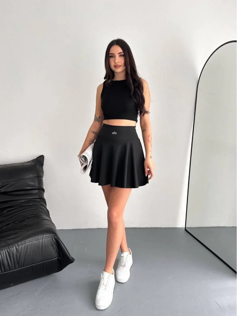 Siyah Alo Şortlu Etek