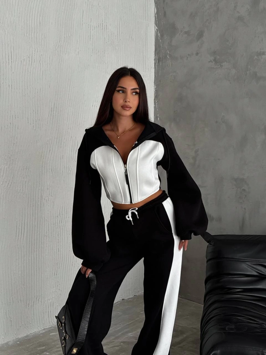 Pudra İki İplik Paça Nakışlı İkili Takım