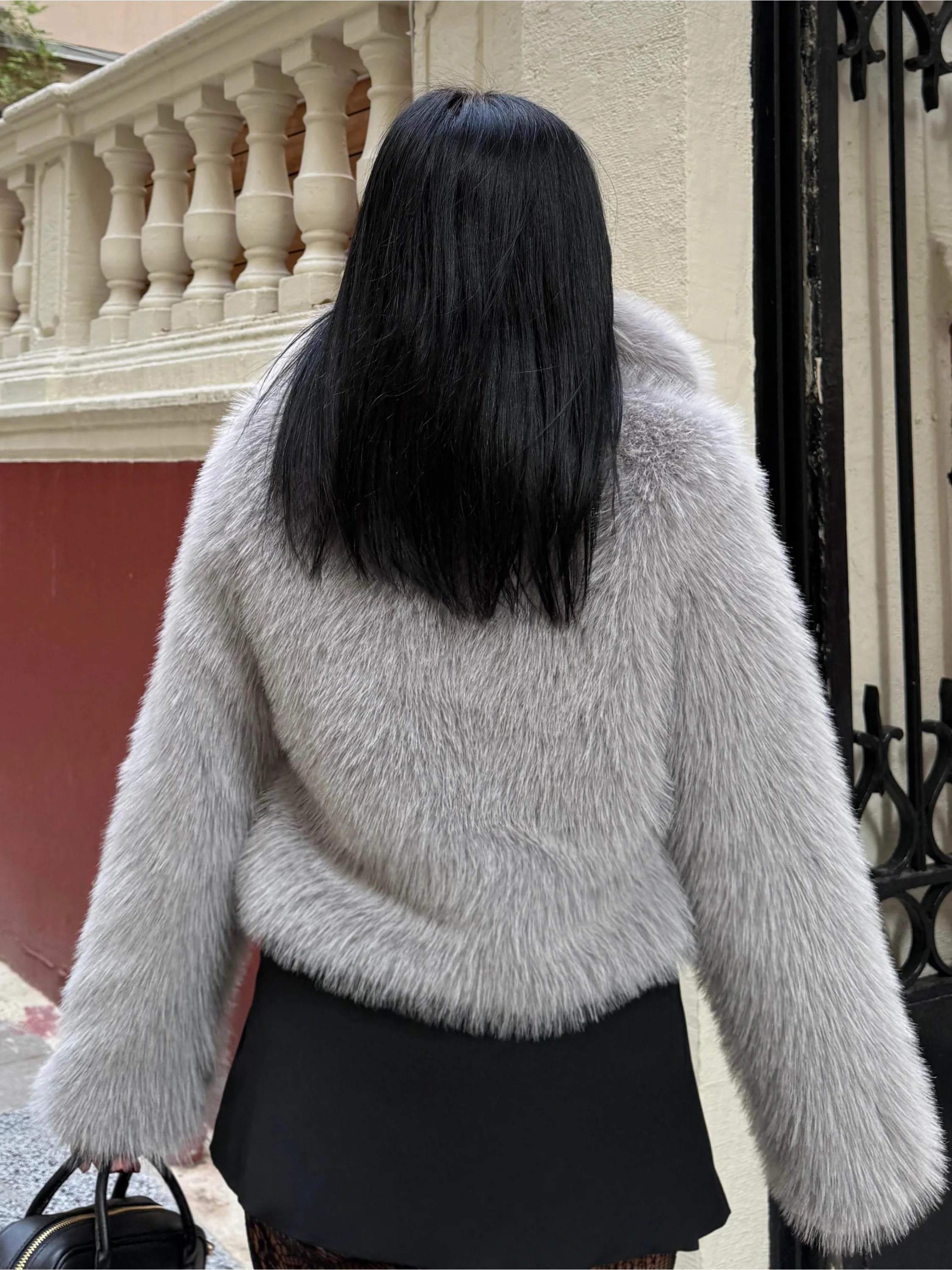 Gri Kısa Crop Kürk