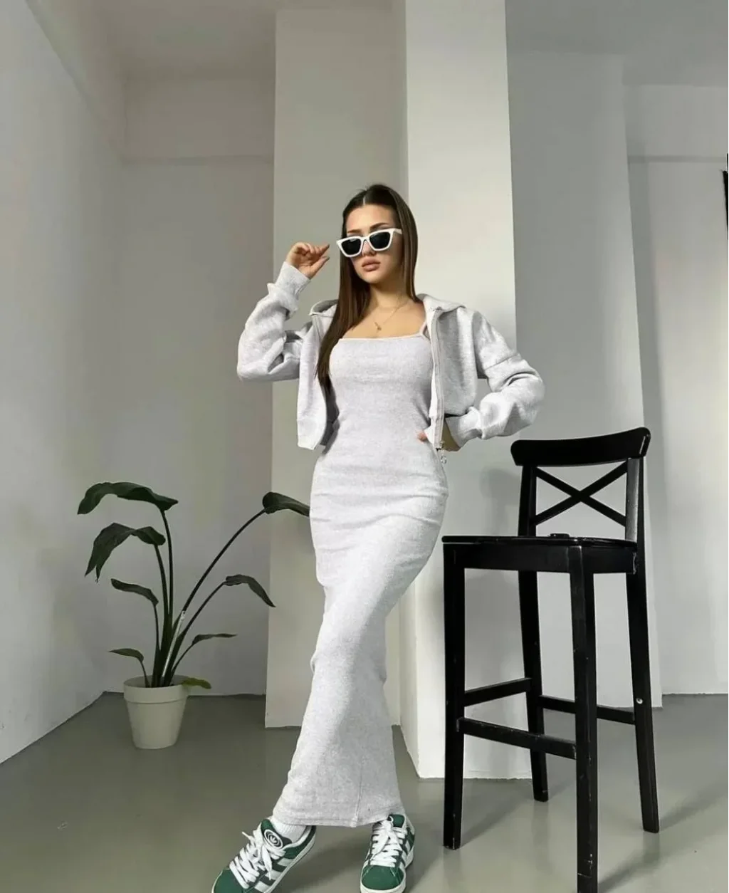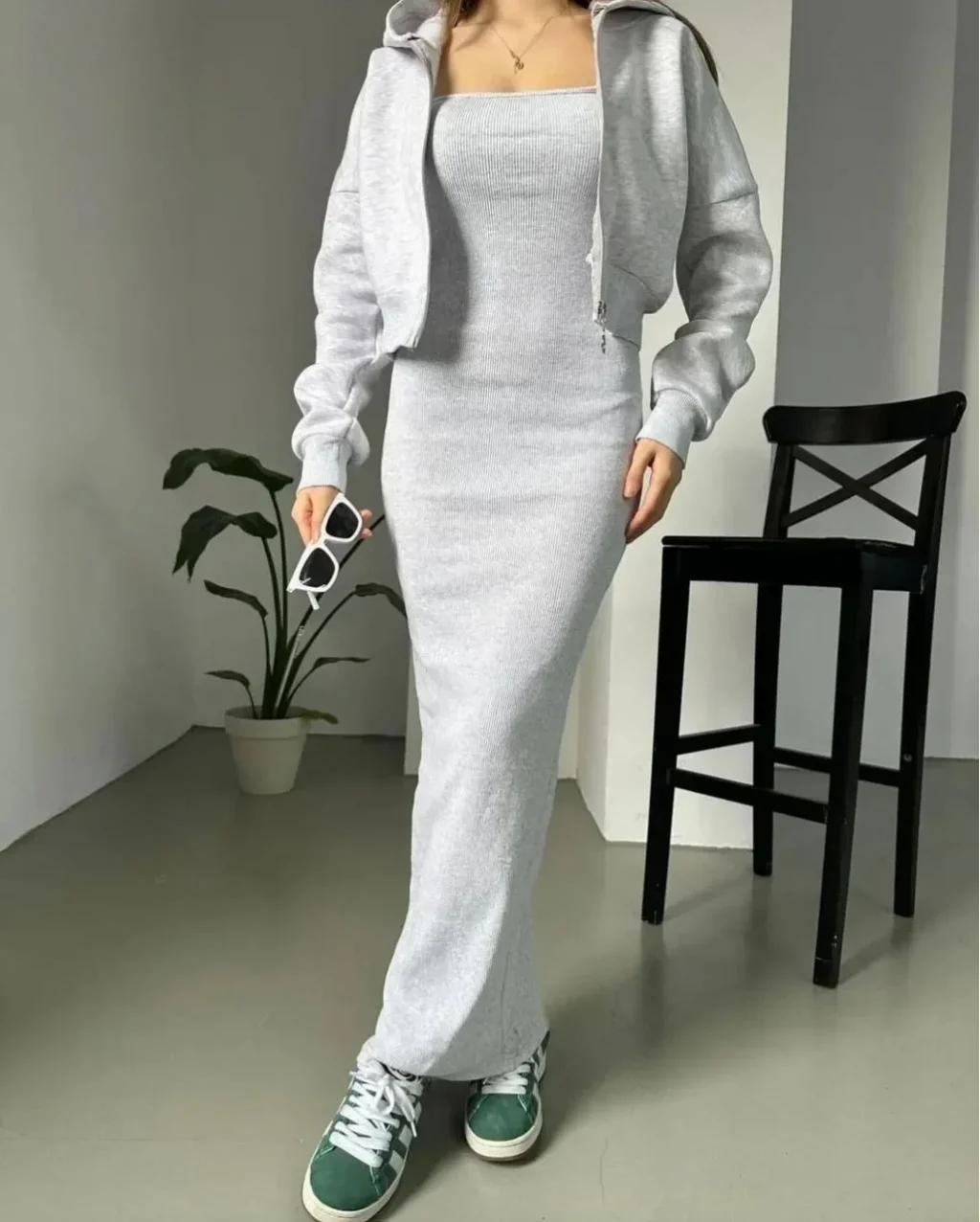 GRİ SWEAT ELBİSE KOMBİNİ