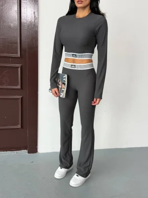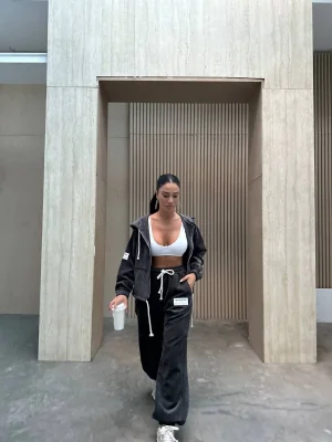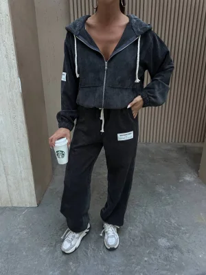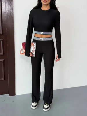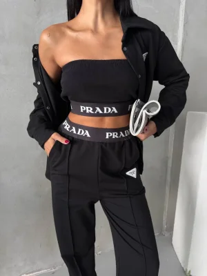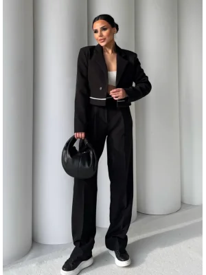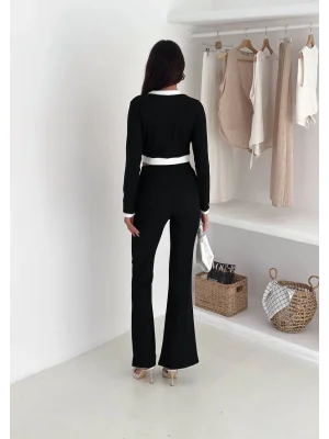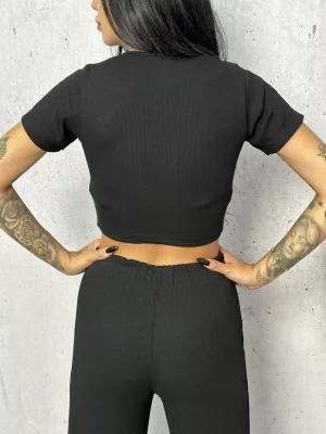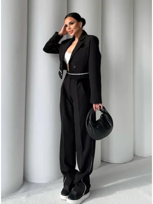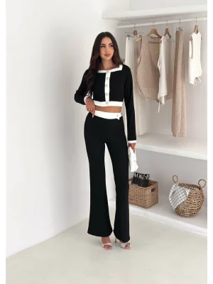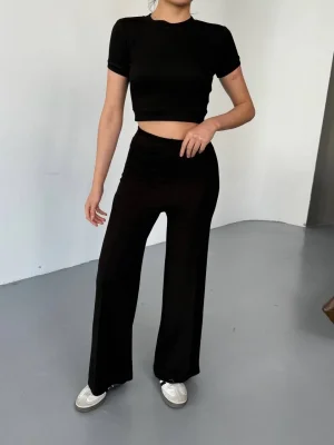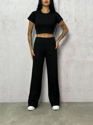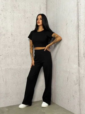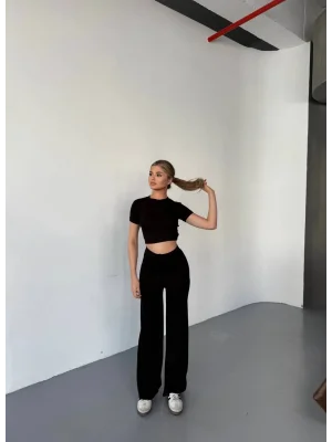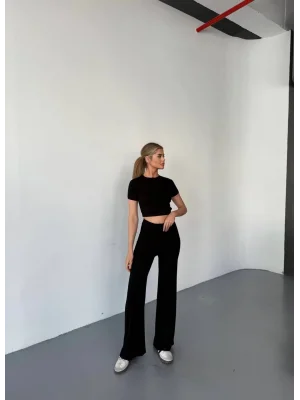 Siyah Palazzo Crop İkili Takım