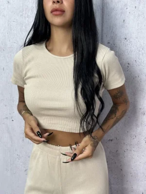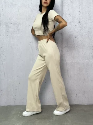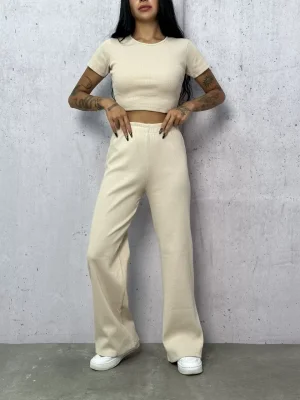 Bej Palazzo Crop İkili Takım