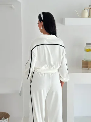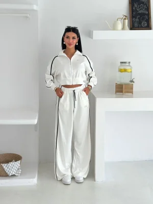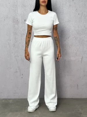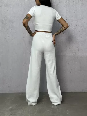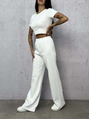 Beyaz Palazzo Crop İkili Takım