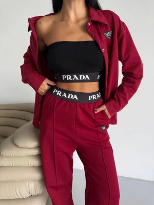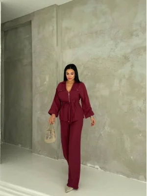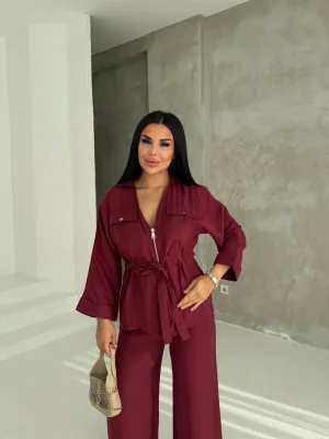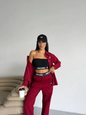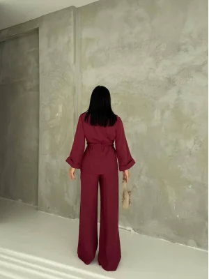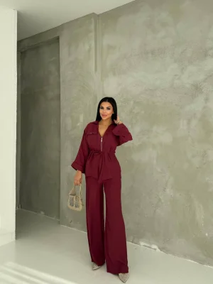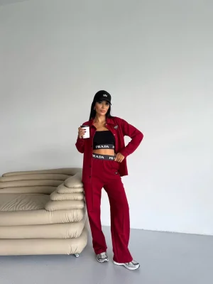 Bordo Model Bol Paça İkili Takım