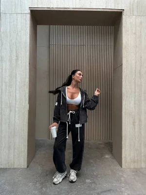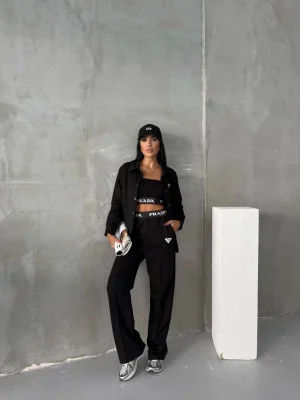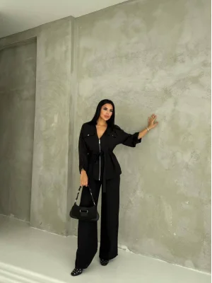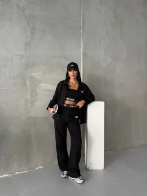 Siyah Model Bol Paça İkili Takım