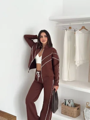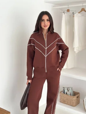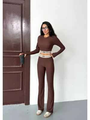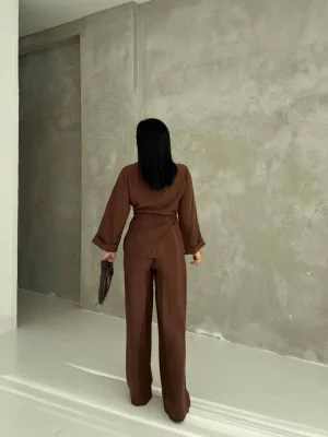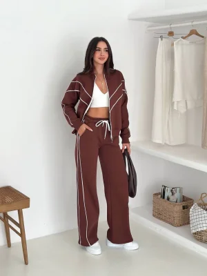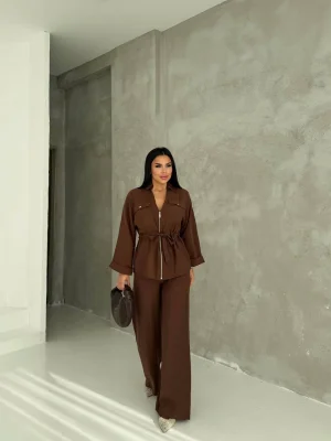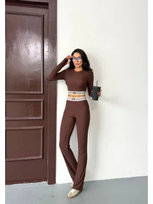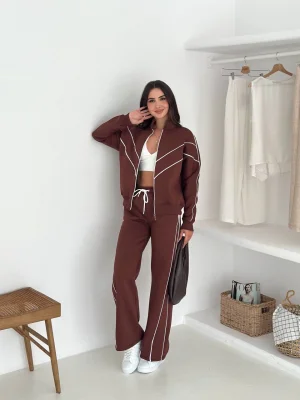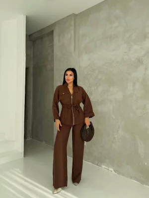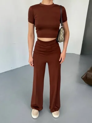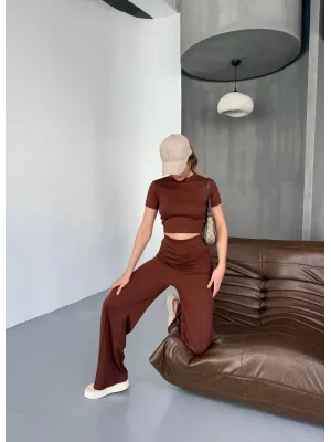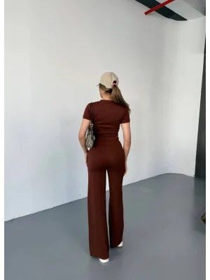 Kahve Model Bol Paça İkili Takım