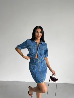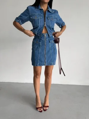 Mavi Denim Fermuarlı Etekli Takım