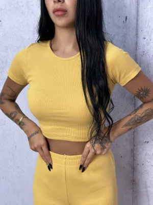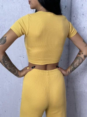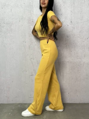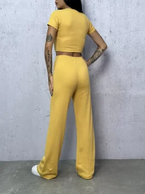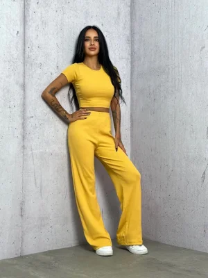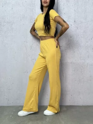 Sarı Palazzo Crop İkili Takım