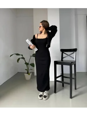 Siyah Sweat Elbise Kombini
