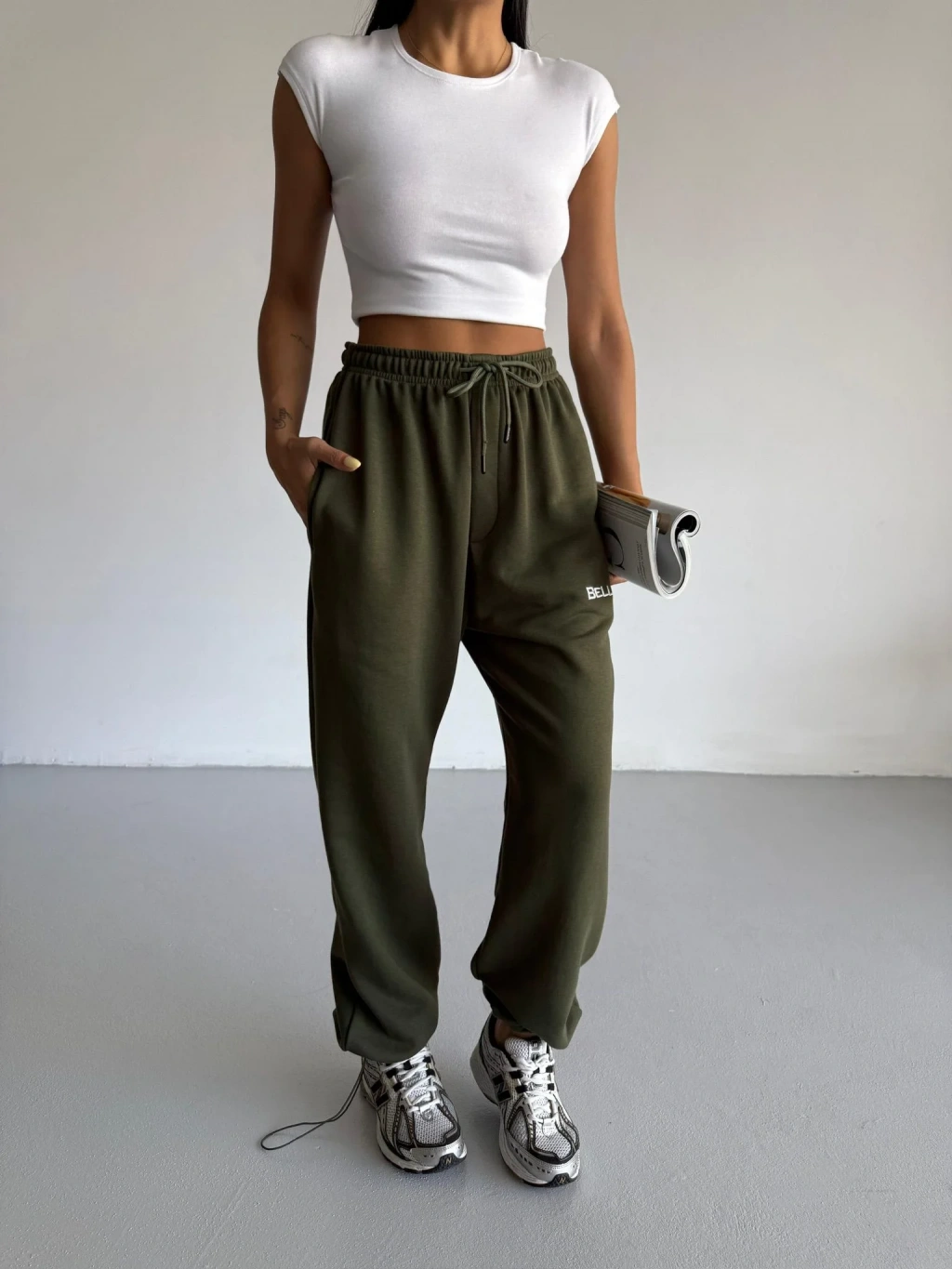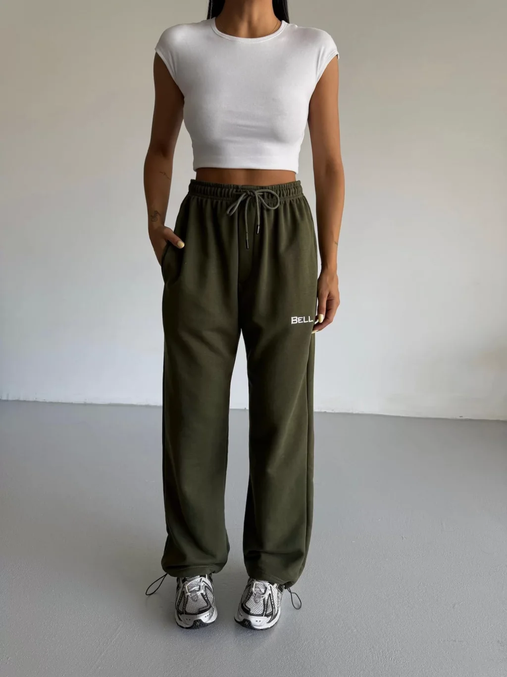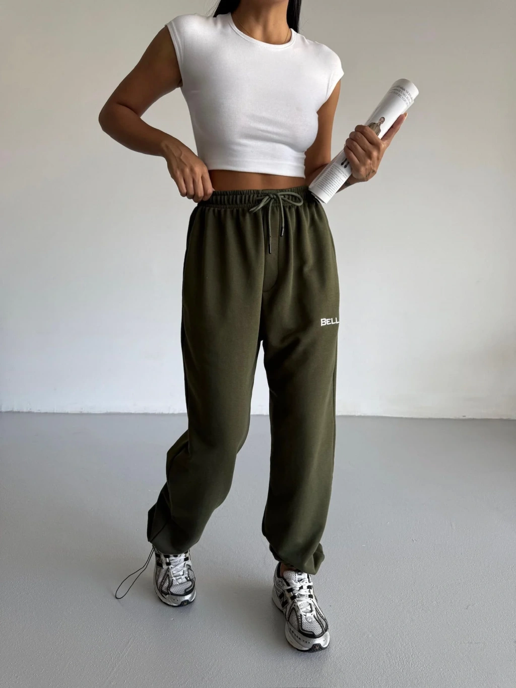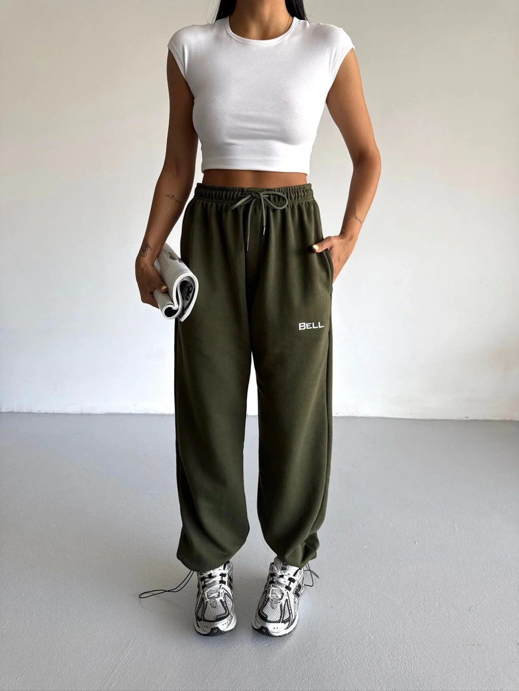 Modaskop'un Haki Bell Stoperli Oversize Unisex Eşofmanı, rahatlığı ve şıklığı bir arada sunar.
