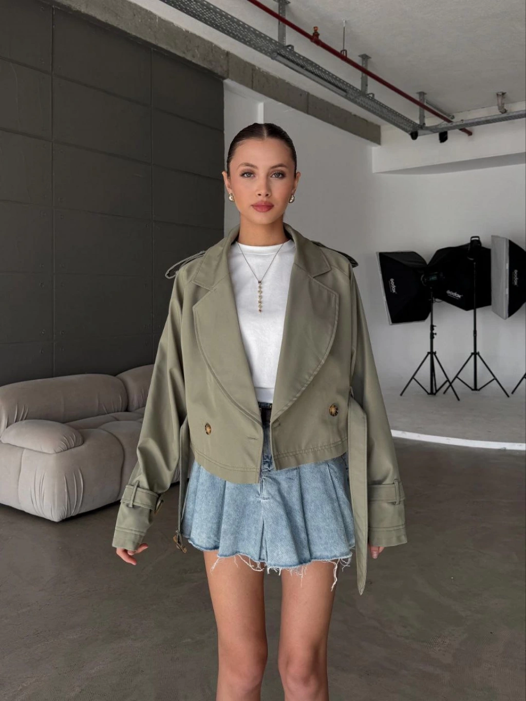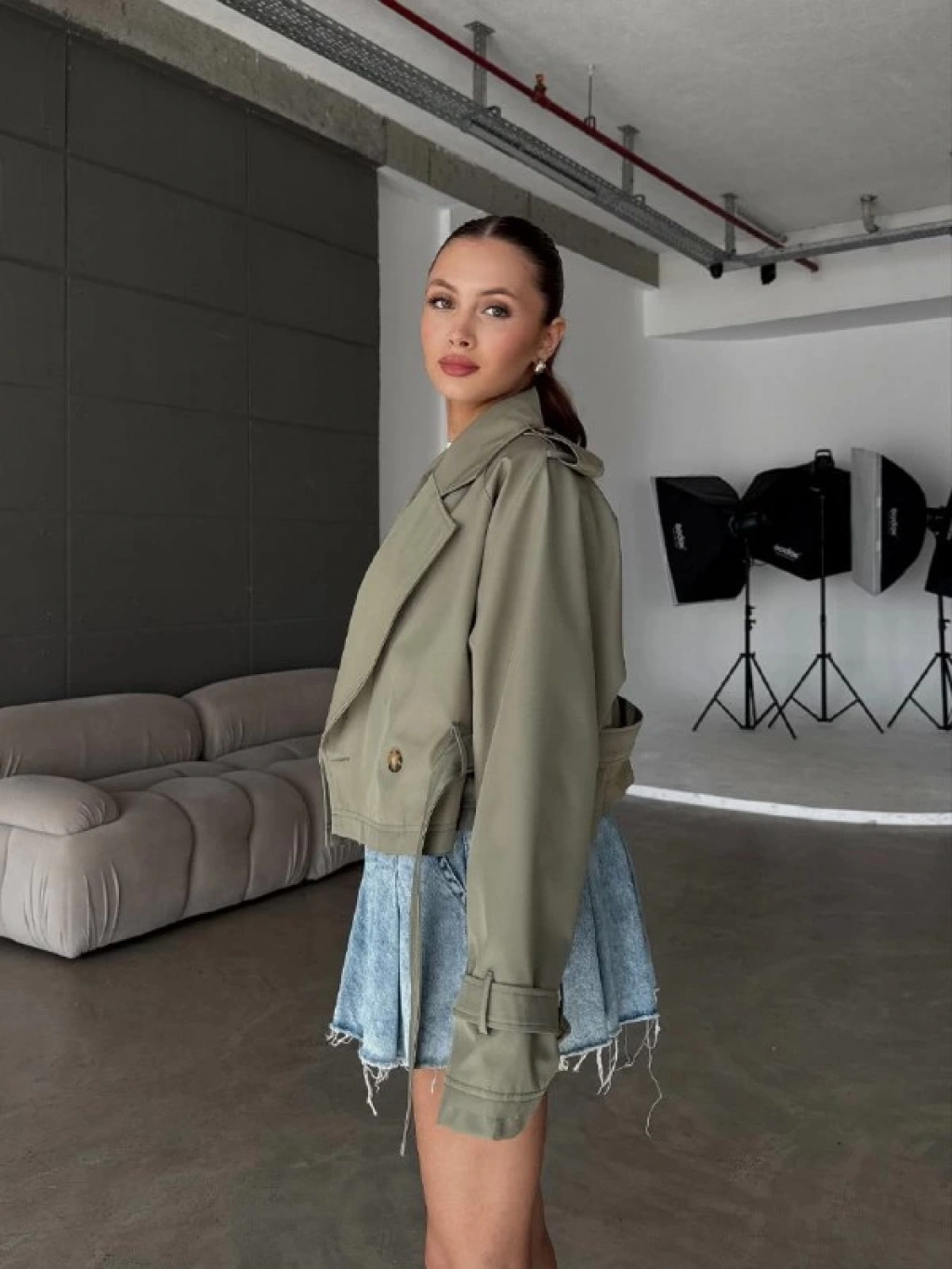 Haki Kemerli Deri Yeni Ceket