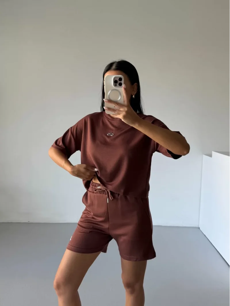 Kahve Alo Yoga Modal Crop Şortlu Takım