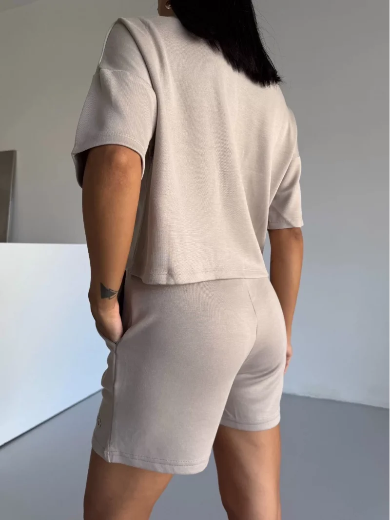 Krem Alo Yoga Modal Crop Şortlu Takım