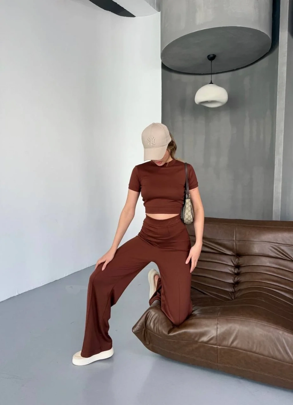Modaskop Kahve Oysho Modal İkili Crop Takım, şıklığı ve rahatlığı bir arada sunar.