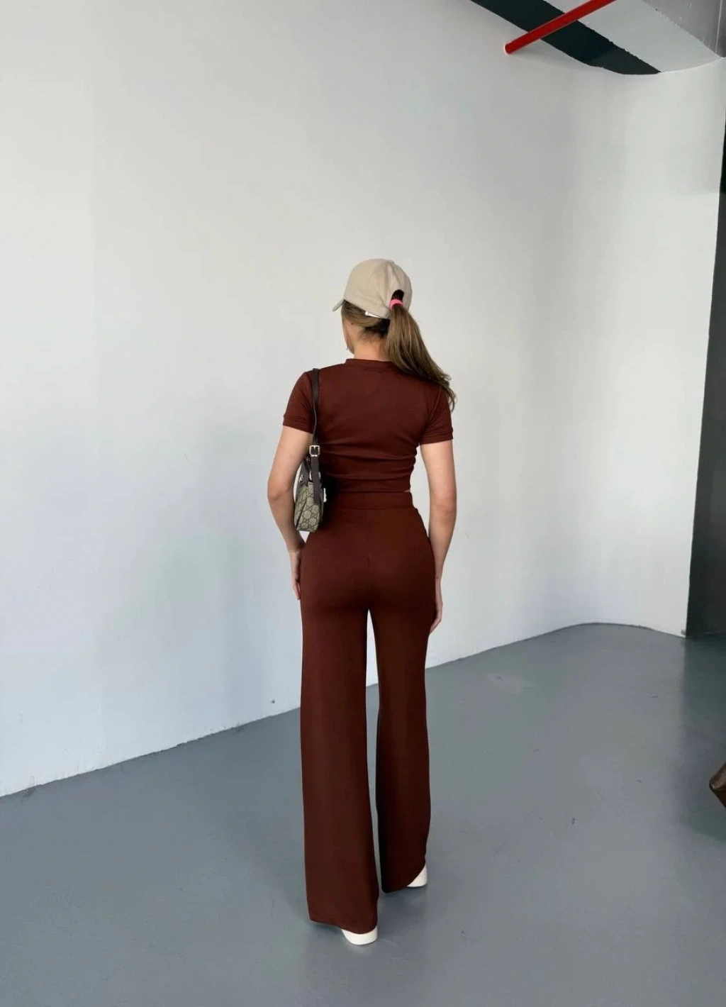 Kahve Oysho Modal İkili Crop Takım