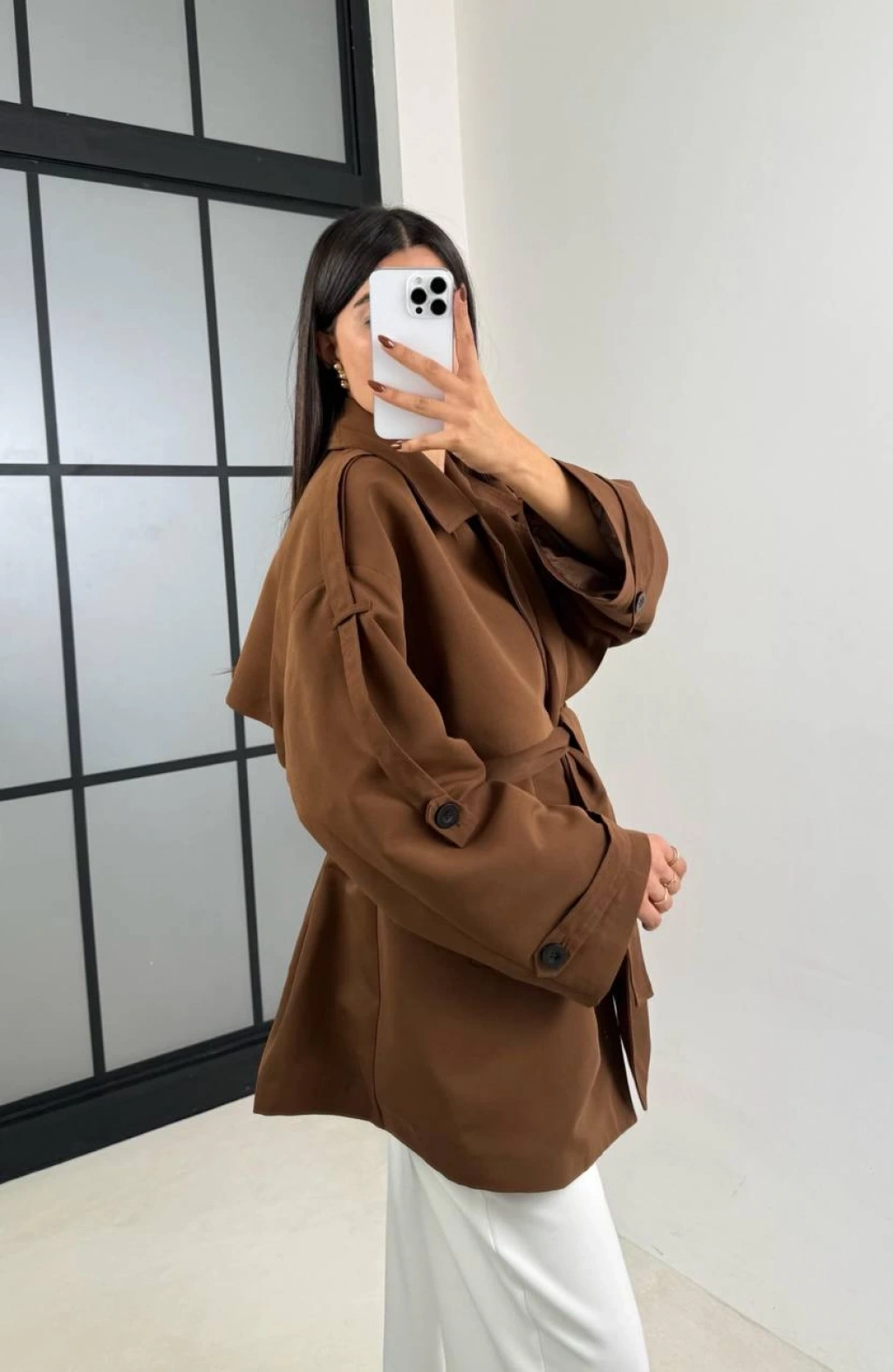 Trençkot, şıklığı ve işlevselliği bir arada sunan özgün tasarımı ile favoriler arasında yer alıyor. Kruvaze yaka detayı ve uzun kol yapısı klasik trençkot stilini modern dokunuşlarla buluşturuyor. Gabardin kumaşı sayesinde dayanıklılık sağlarken iç astarı ile koruma sunuyor. Ayrıca bel kısmındaki kemer detayı hem konfor hem de stil açısından esneklik tanıyor. Uzun boyu ve kaliteli dikiş detayları ile dikkat çeken tasarım, mevsim geçişlerinde favoriler arasında öne çıkıyor.