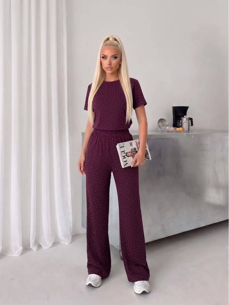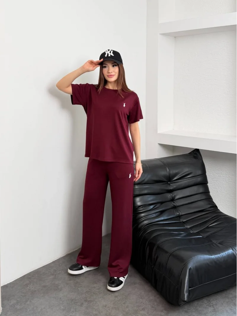 Bordo Taşlı Modal İkili Takım