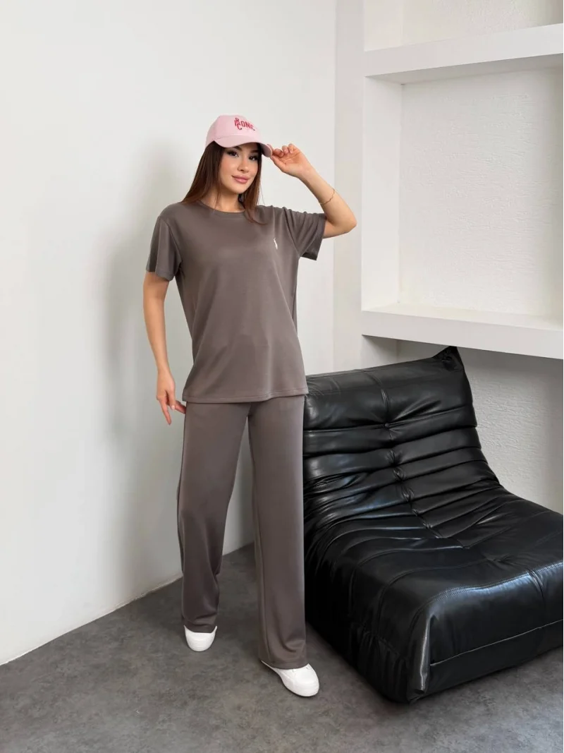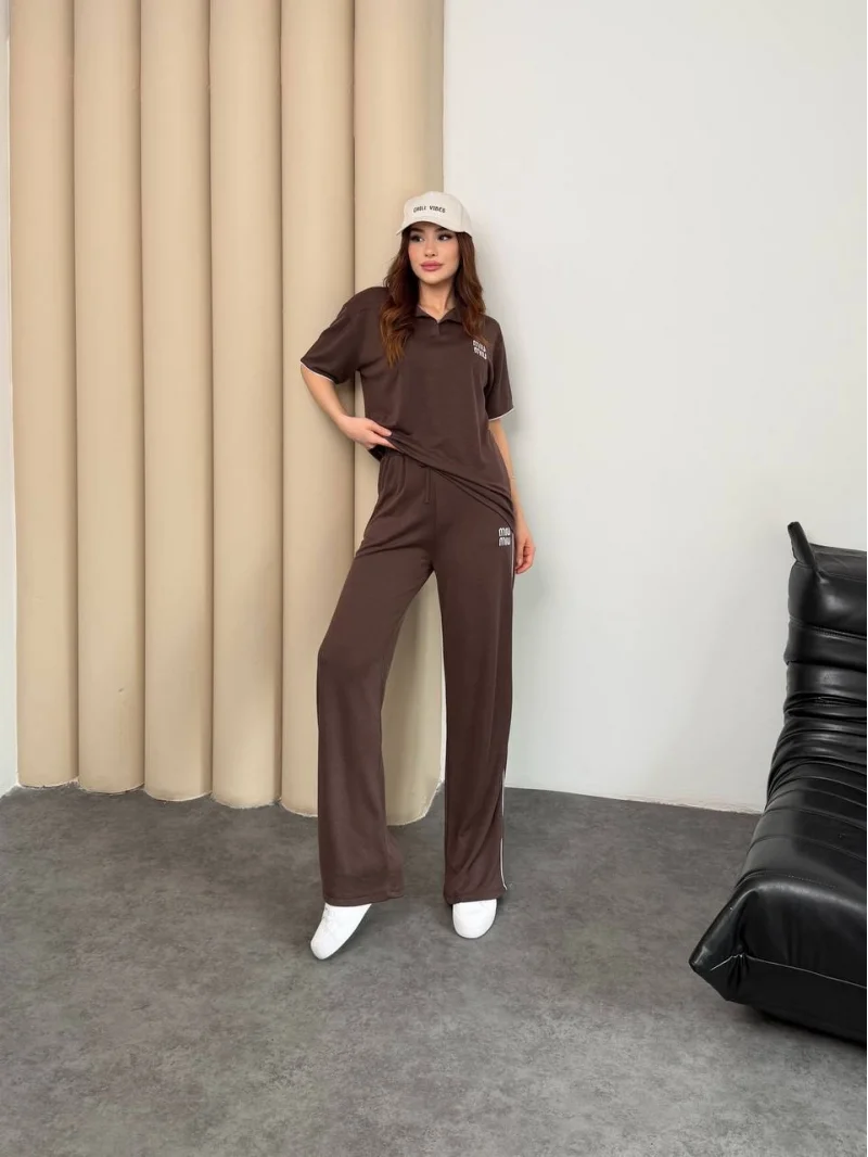 Kahve Logo Nakış Detaylı Soft Premium Modal İkili Takım