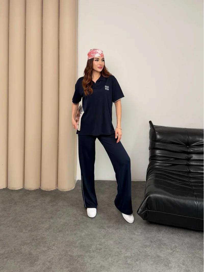 Lacivert Logo Nakış Detaylı Soft Premium Modal İkili Takım