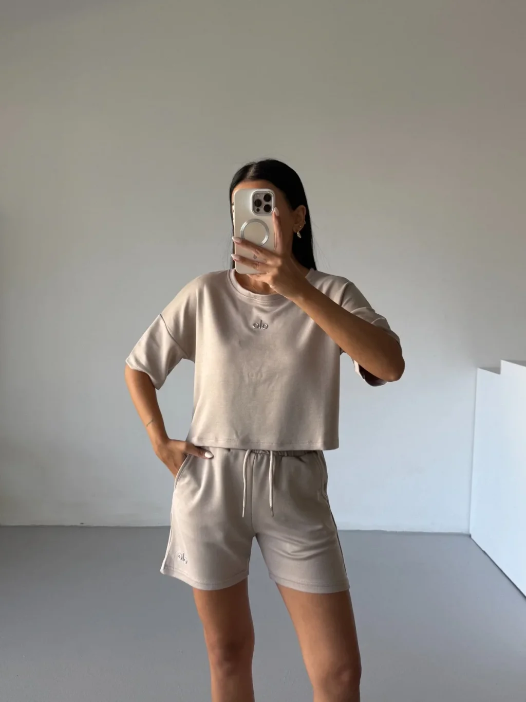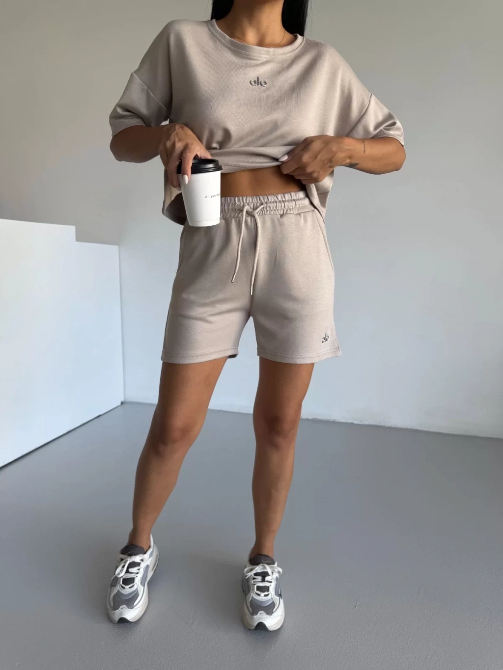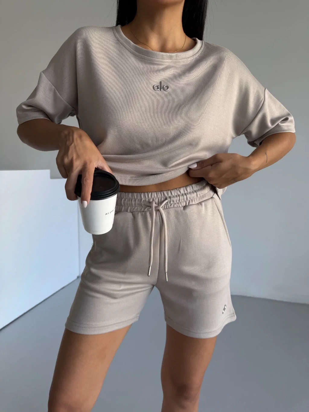 Modaskop Krem Alo Yoga Modal Crop Şortlu Takım, rahat ve şık kombinlerin vazgeçilmezi!