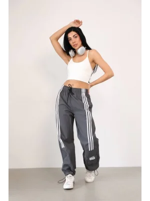 Krem Önden Üç Şerit Paça Cep Detay Paraşüt Eşofman