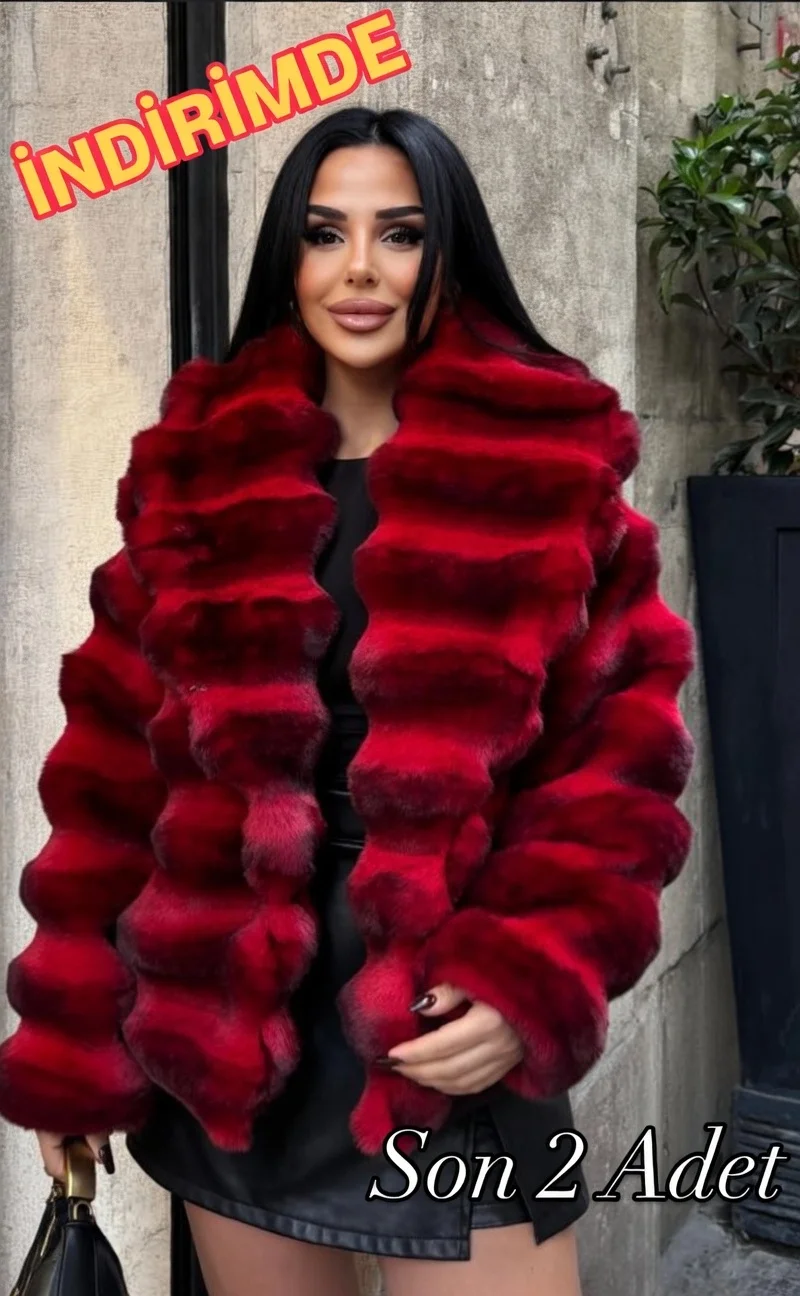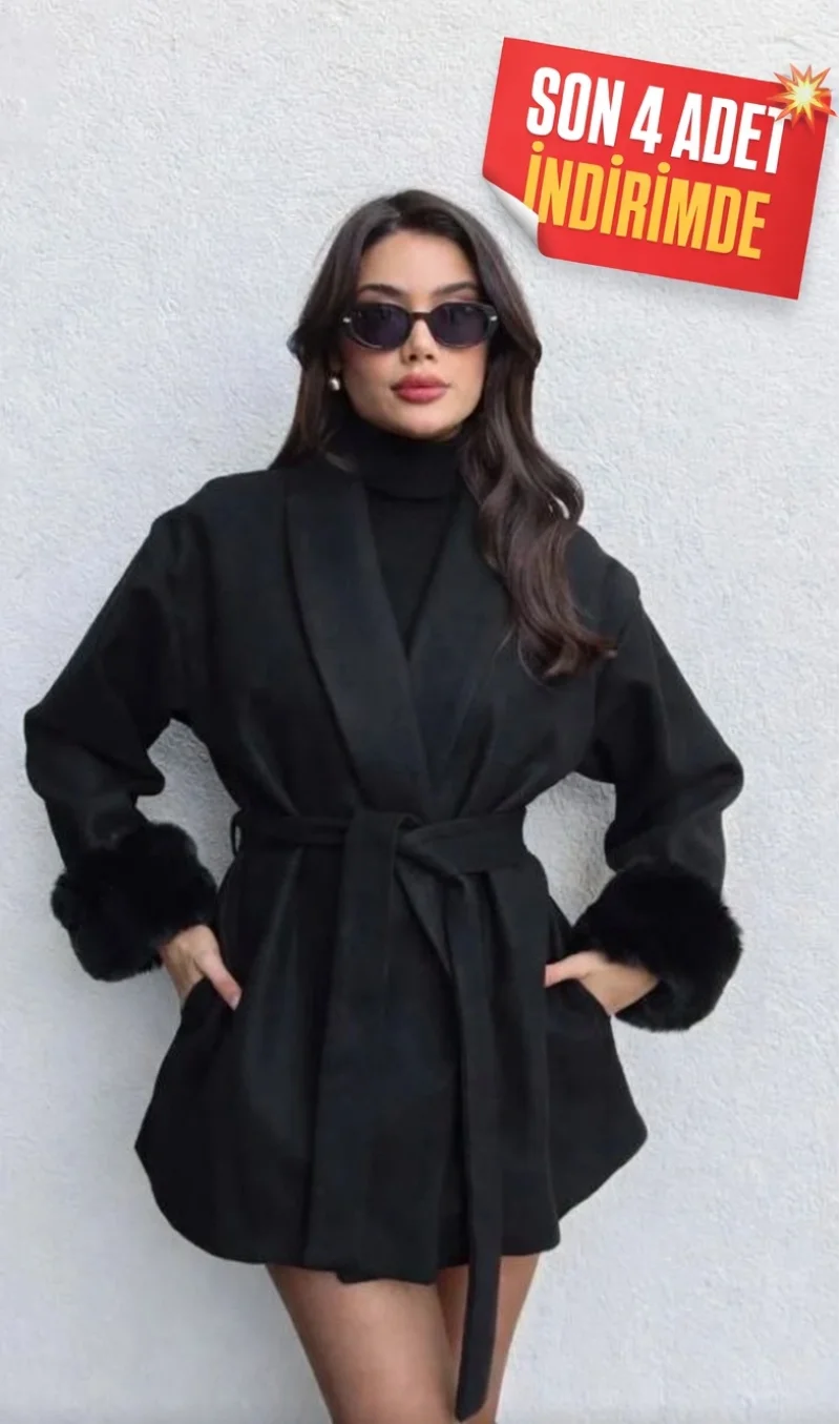 Siyah Kolları Kürk Detaylı Astarlı Kaşe Premium