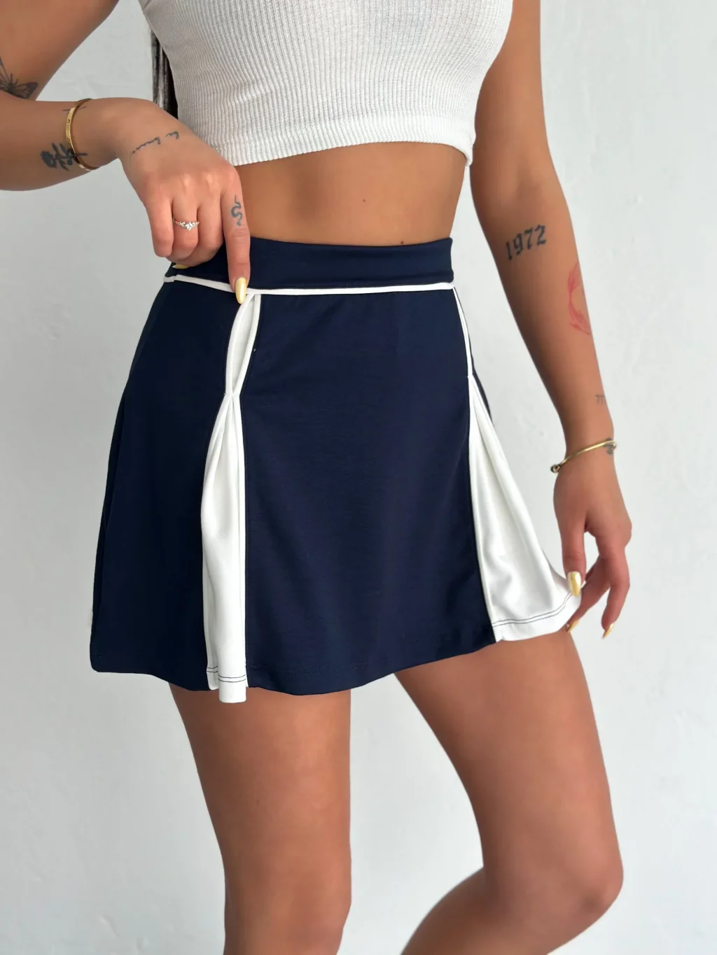 Modaskop Lacivert Çift Renk Modal Şort Etek, şıklığı ve konforu bir arada sunar. Öne çıkan bir parça!