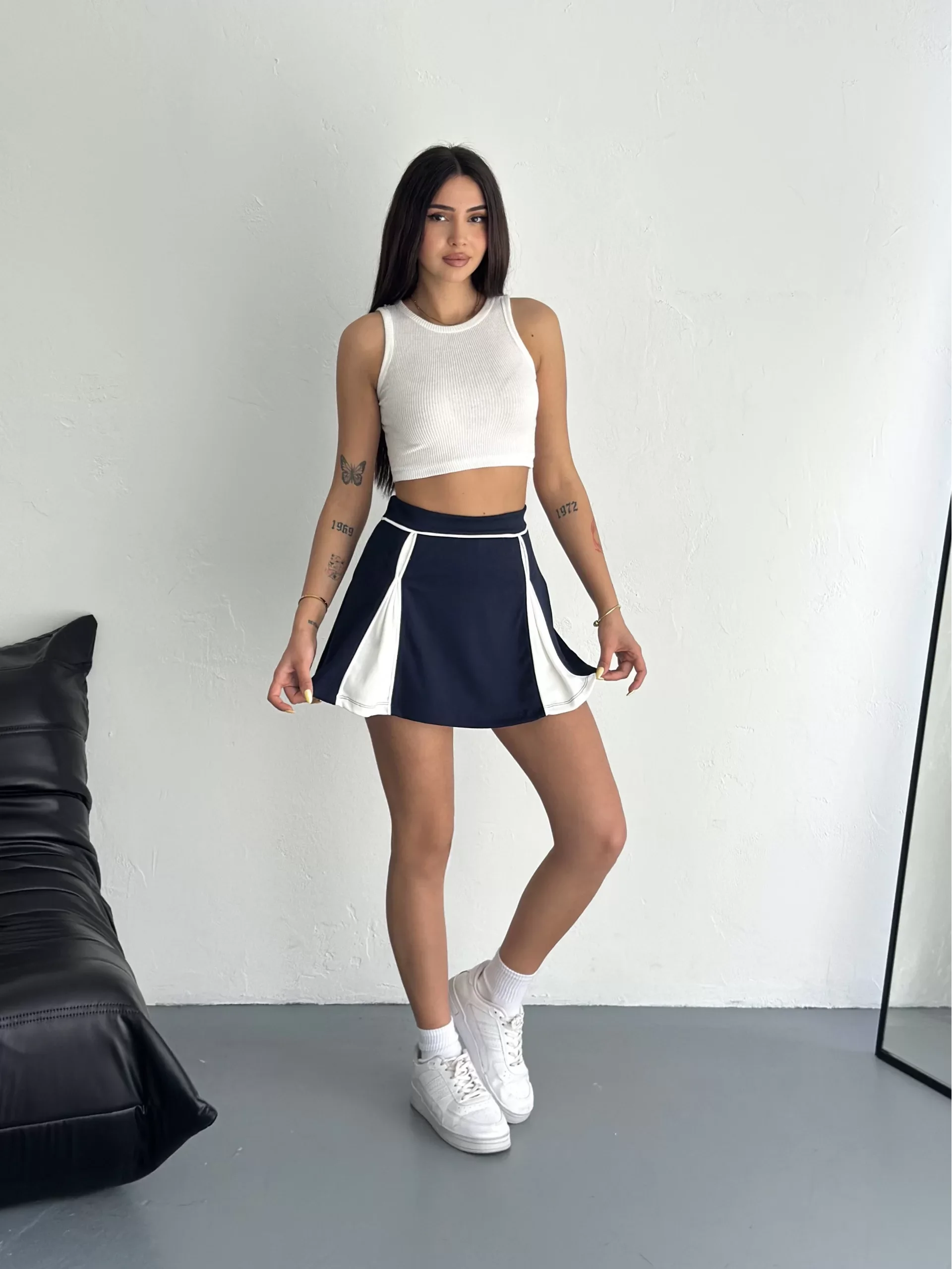 • <p>Lacivert &Ccedil;ift Renk Modal Şort Etek<br /><br />SIZE: S-M-L-XL<br />Kumaş: Modal Kumaş<br />Manken &Ouml;l&ccedil;&uuml;leri: Boy:169 Cm Kilo: 55 Kg.<br />Manken Bedeni: S (36) Beden</p>