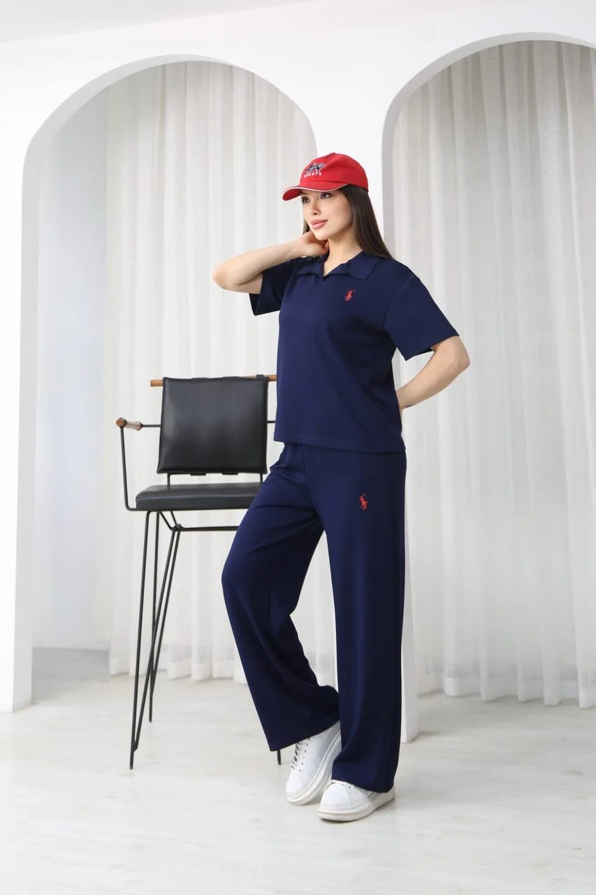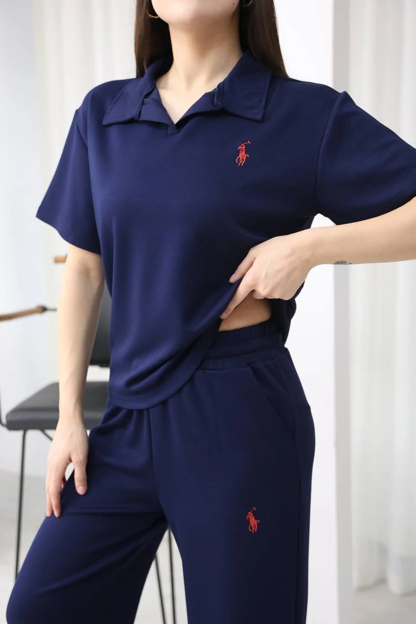 • Lacivert Polo Yaka Minimal Logo Detaylı Premium Spor Takım