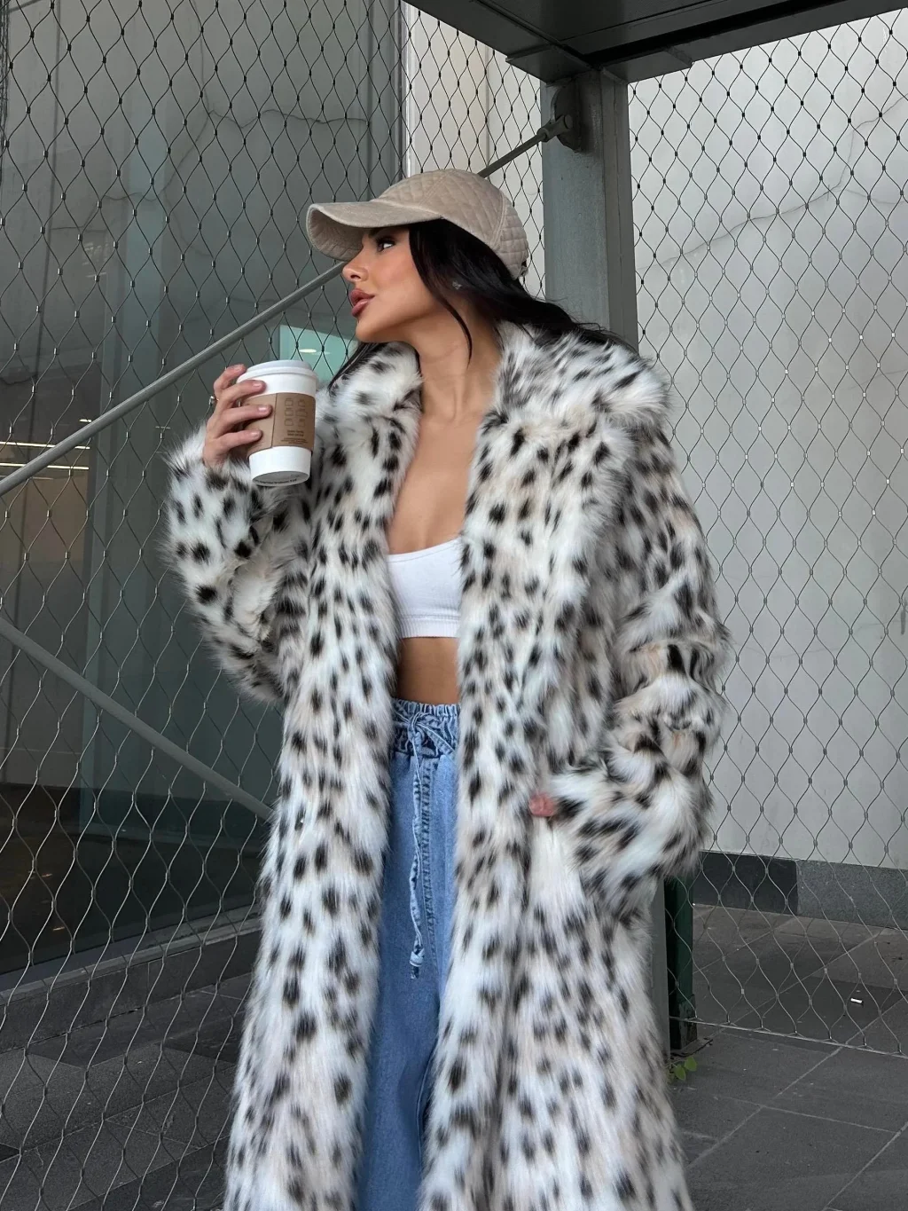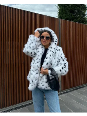 Leopar Ceket Yaka İçi Satarlı Uzun Kürk Kaban