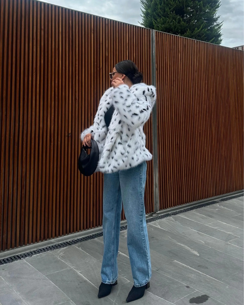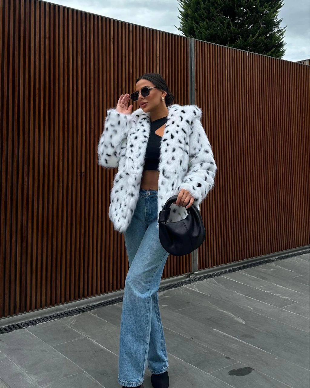 Siyah Ceket Yaka Kürk Kaban